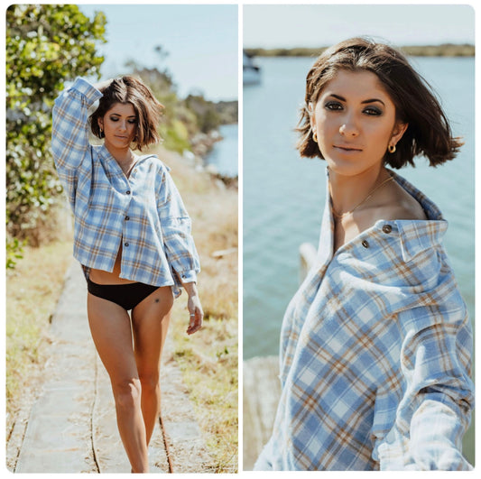 Kayli Blue, White and Tan Check Shacket