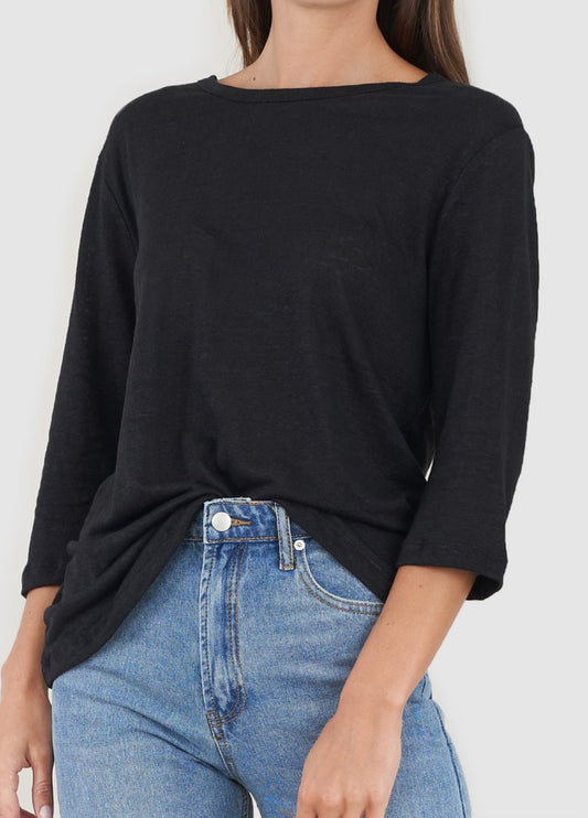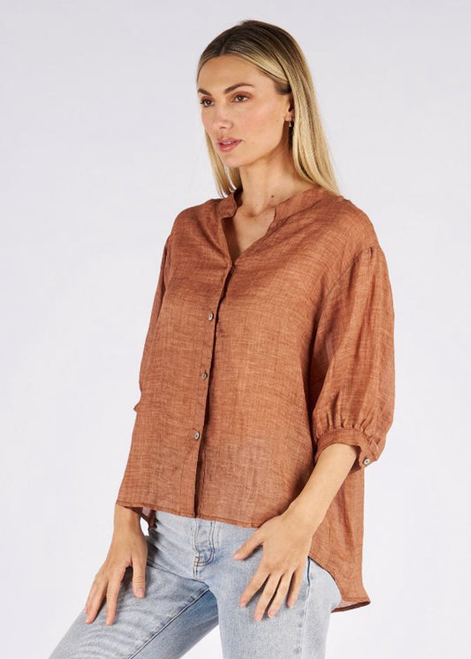 Sold outBronte Rust Linen 3/4 Sleeve Top