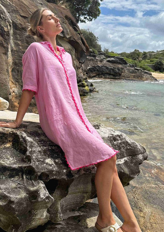 Isabel Pink/ Hot Pink Ric Rac Shirt Dress