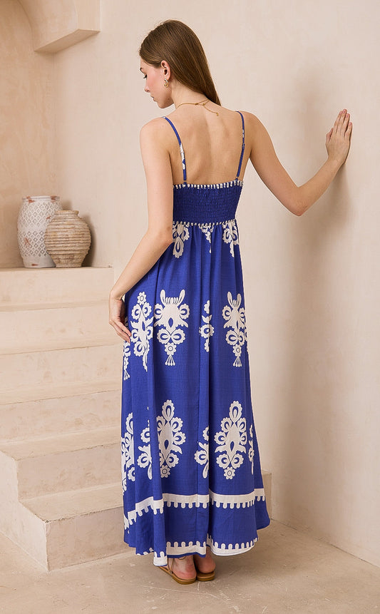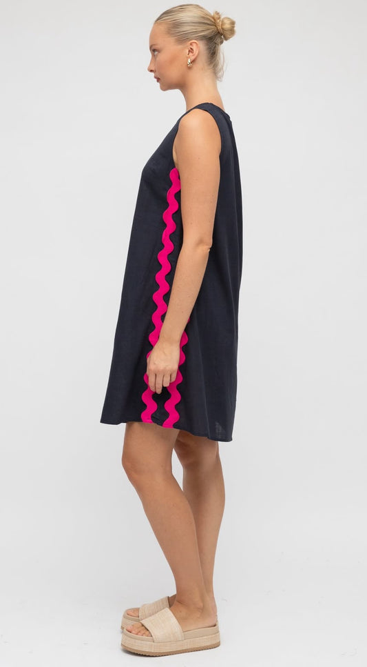 Barcelona Mini Navy with Pink Ric Rac Maxi Dress