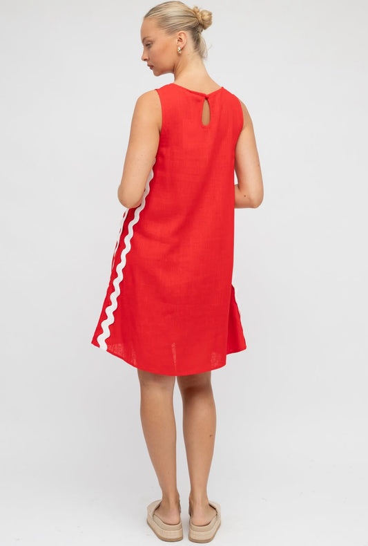 Barcelona Mini Red with White Ric Rac Maxi Dress