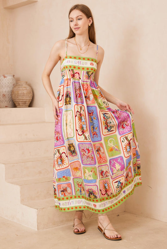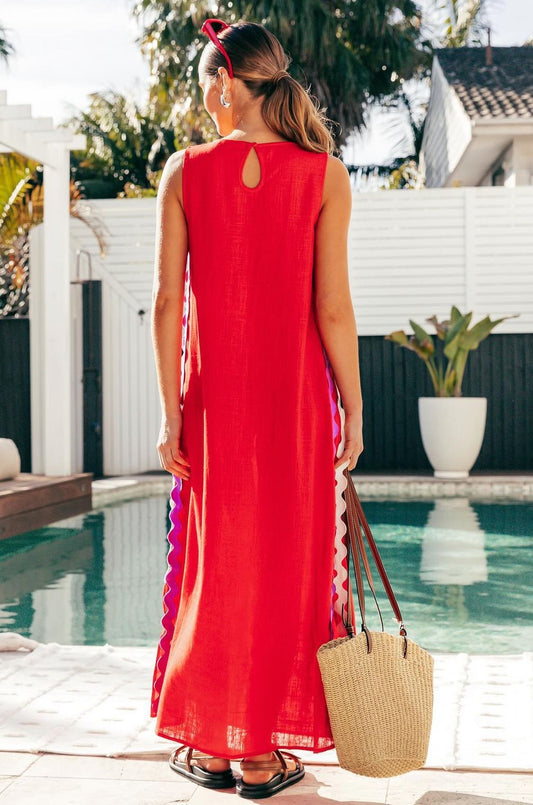Barcelona Red with White/Purple Ric Rac Maxi Dress