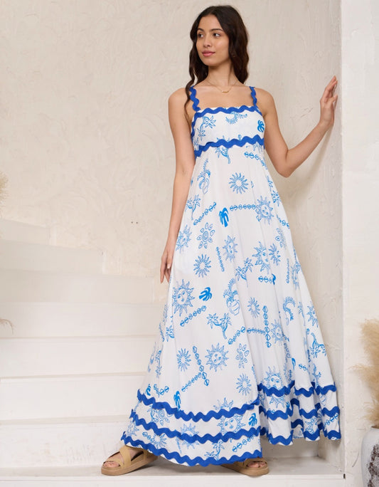 Sold outSummer Blue Sun Ric Rac Maxi Dress