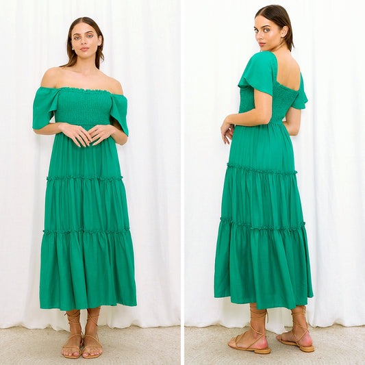Iris Maxi - Jodie Shirred Midi, Green