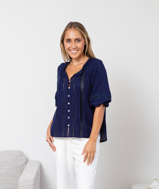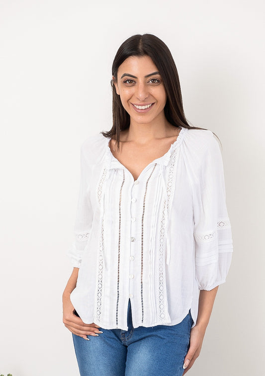 Sold outCONNIE White GROSGRAIN STRIPE TOP