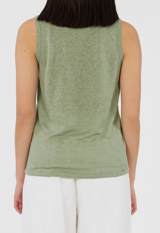 Sold outAceline Tea Green Linen Tank
