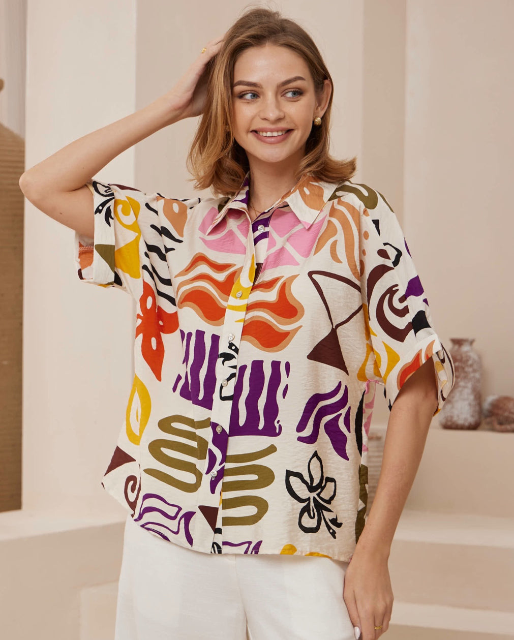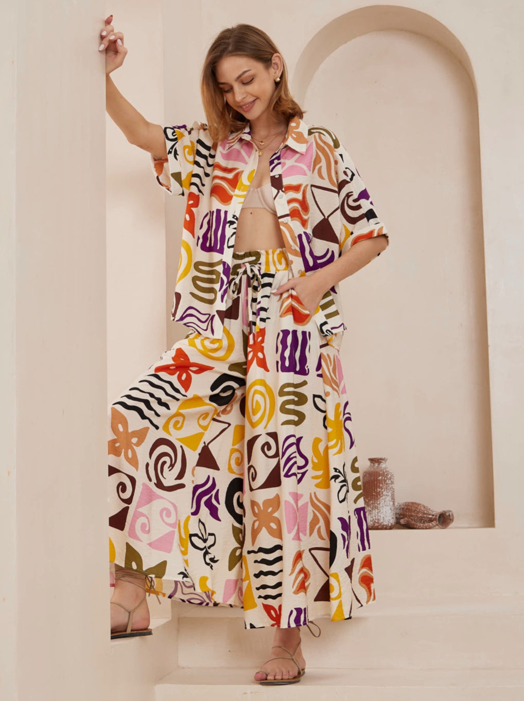 Frida Print is a Bold and Colourful Print to Brighten up any wardrobe. Style Back with The Matching Frida Pant for this Seasons Matching Sets Look. Or pair Back with your Favourite Jean, Linen Pant or Shorts